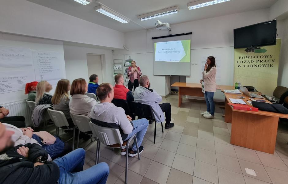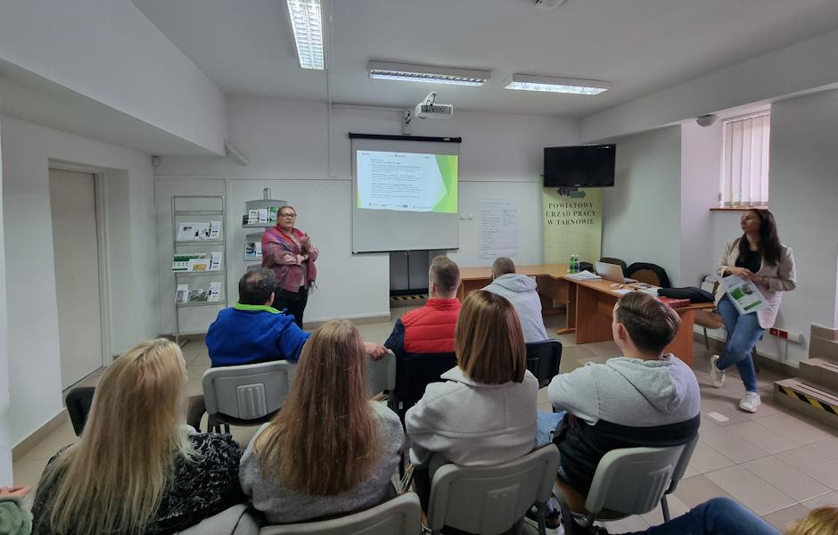W dniu 9.10.2025 r. w siedzibie Powiatowego Urzędu Pracy w Tarnowie odbyło się spotkanie przedstawicieli Spółdzielni Socjalnej Serwis z potencjalnymi uczestnikami projektu „Restart Kariery – Nowy Rozdział Zawodowy” w ramach Funduszy Europejskich dla Małopolski 2021-2027, Priorytet 6. Fundusze europejskie dla rynku pracy, edukacji i włączenia społecznego, Działanie 6.6 Rozwój kompetencji kadr i adaptacji do zmian z Europejskiego Funduszu Społecznego Plus realizowanego w partnerstwie z Fundacją im. Hetmana Jana Tarnowskiego.